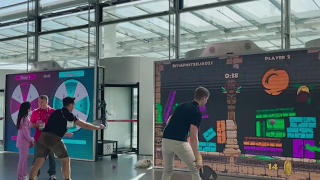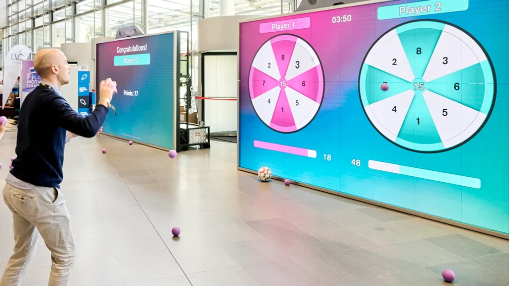 Interactive games built into digital displays encourage visitors to participate in short challenges, quizzes, or skill-based activities.