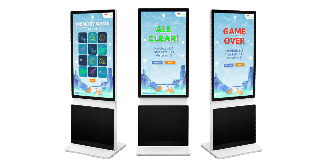 Interactive memory game experiences allow visitors to match digital cards on a touchscreen display, creating a fun and engaging activity for events, exhibitions, and brand activations.